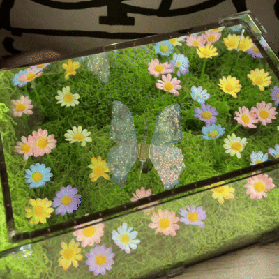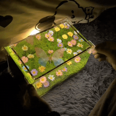 🌟 A dreamlike wonderland of green: A small garden is hidden in the transparent acrylic cube, full of greenery and dancing butterflies. Every time it is lit, it is a spring fairy tale.